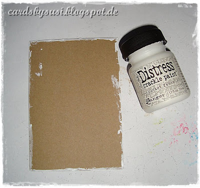 Distress Crackle Paint gibt es in verschiedenen Farben. Ich nutze derzeit nur weiß, da dies zu einfach allem passt... =) Versucht es ruhig aus und ihr werdet merken, dass man es am liebsten für alle Bastelein verwenden möchte ;)